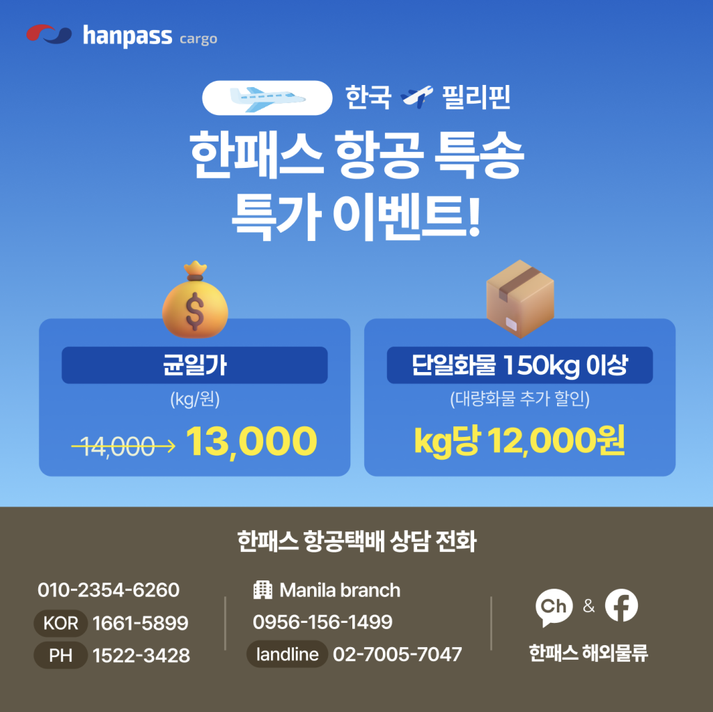 [한패스-카고] 특가 이벤트 > 한국->필리핀 항공 특송(로켓배송)은 한패스에서 !!!